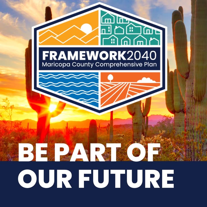 Maricopa County is hosting a virtual public meeting to review and discuss the Framework 2040 Comprehensive Plan Public Review Draft. The meeting is scheduled for Thursday, January 29, from 5 to 6 PM. This session marks the start of a 60-day public review period during which residents can provide feedback on future county-level decisions concerning growth, development, and preservation through 2040. Interested participants can RSVP for the meeting through the provided online form.